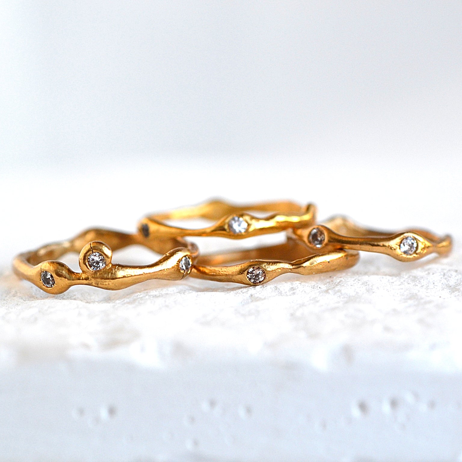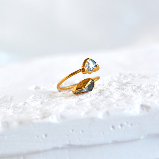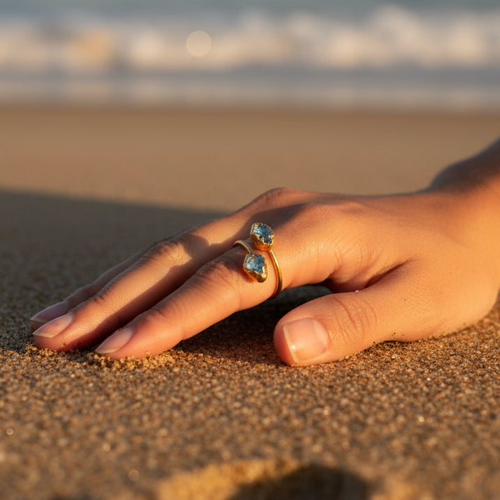 Kolekcja regulowanych pierścionków o organicznych kształtach inspirowanych naturą. Każdy pierścionek zdobi unikalny kamień naturalny. Dzięki możliwości regulacji idealnie dopasują się do każdego palca, co czyni je doskonałym prezentem bez potrzeby znania rozmiaru.