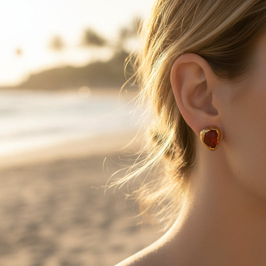 Kolczyki Sztyfty Kwarc Wiśniowy