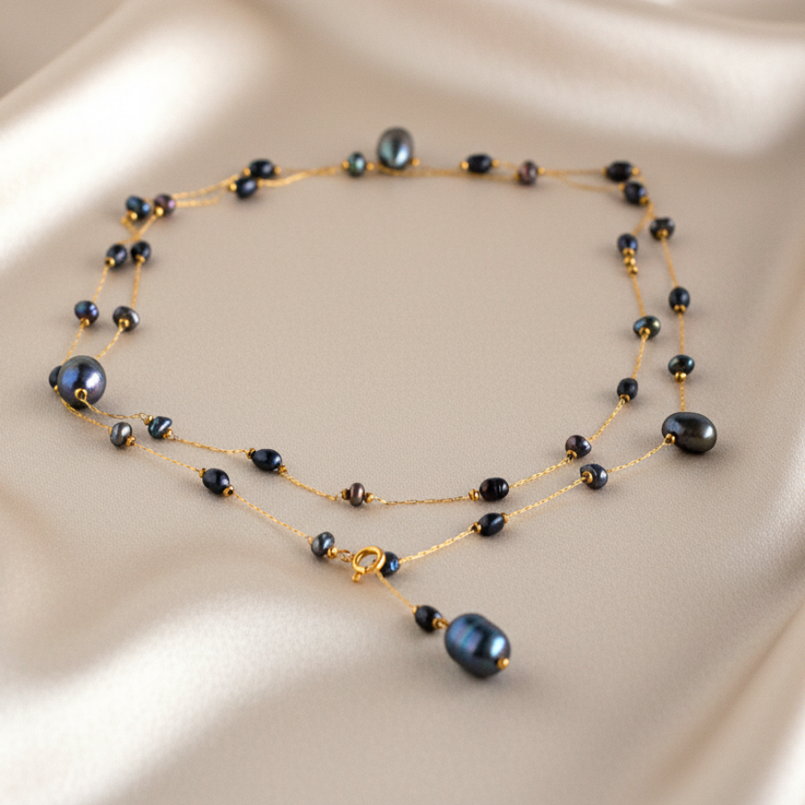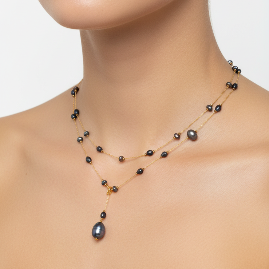 Naszyjnik z Czarnymi Perłami - Wielofunkcyjny