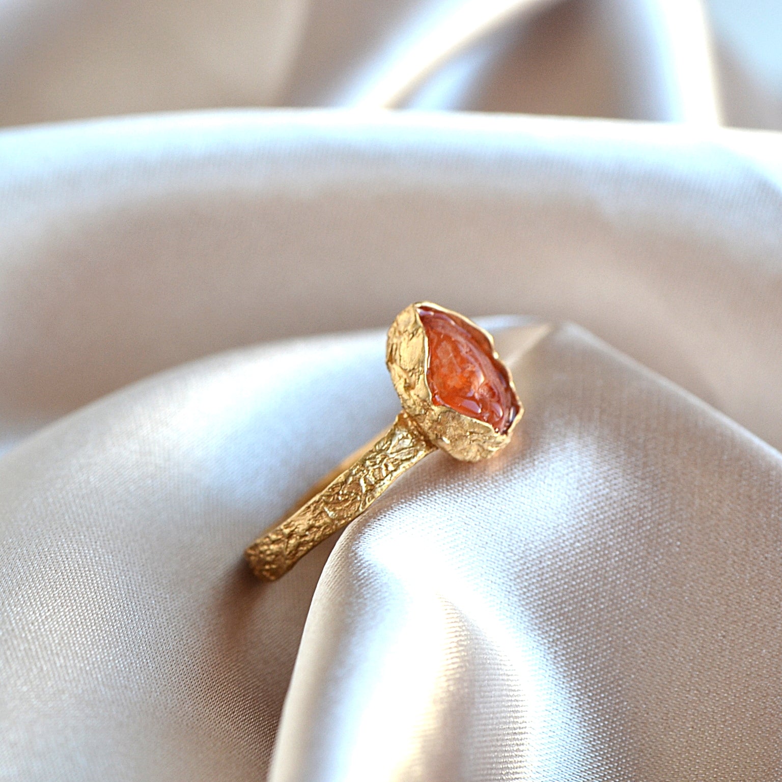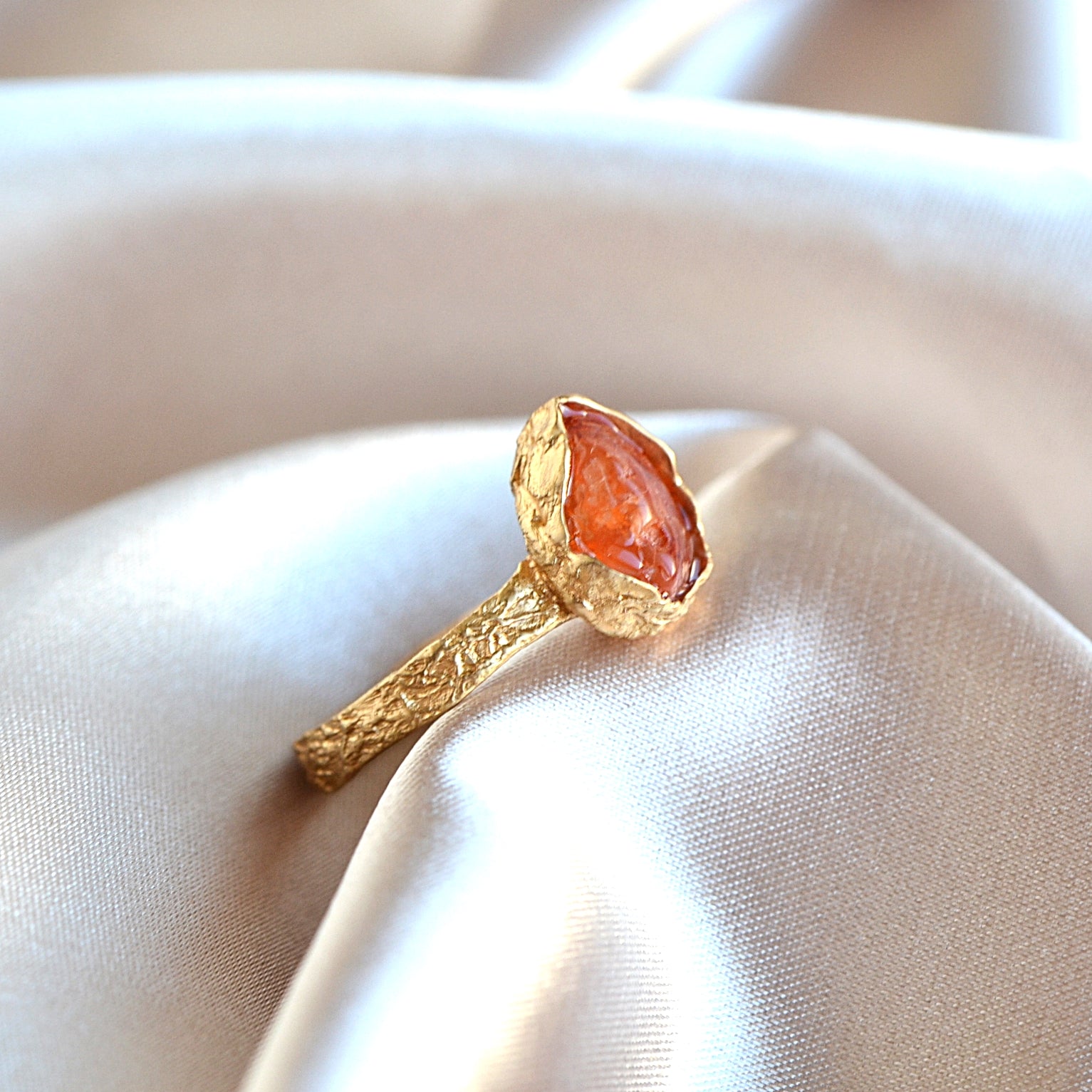 Pierścionek z Pomarańczowym Karneolem o organicznej strukturze