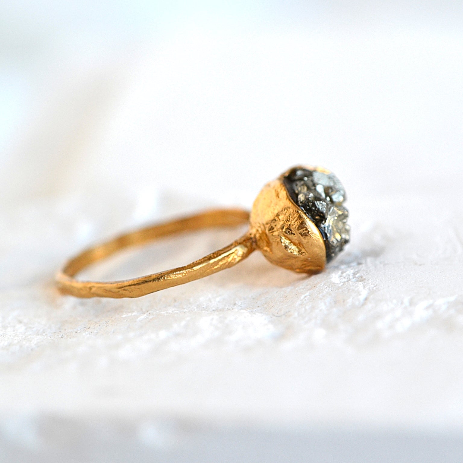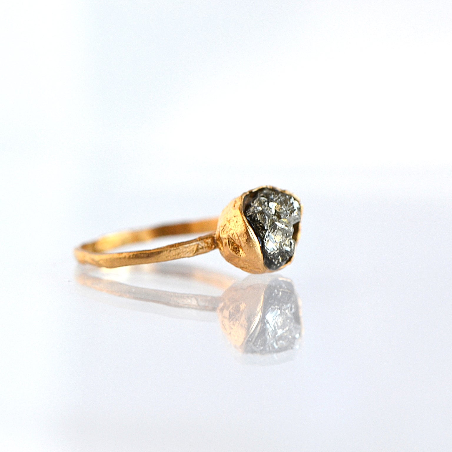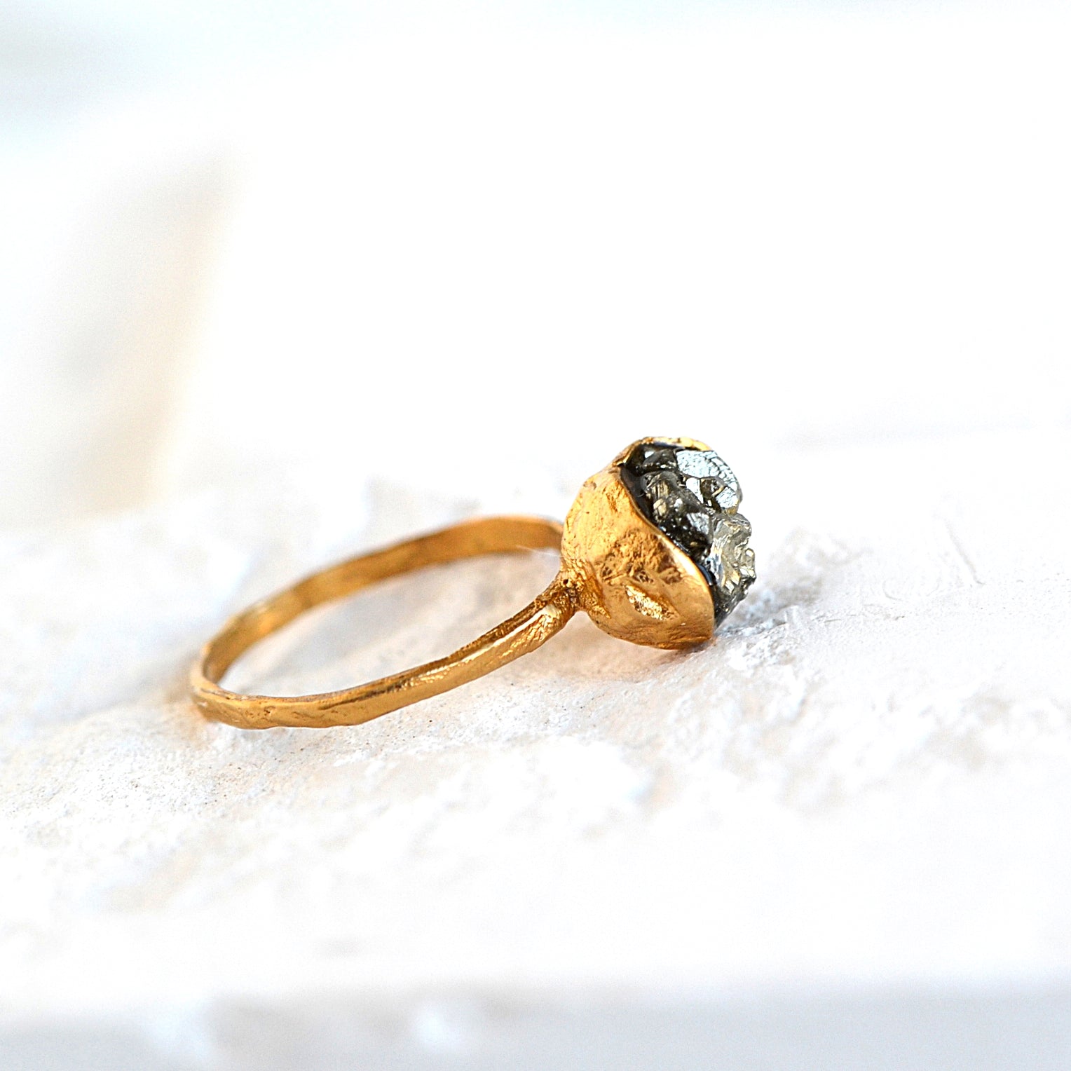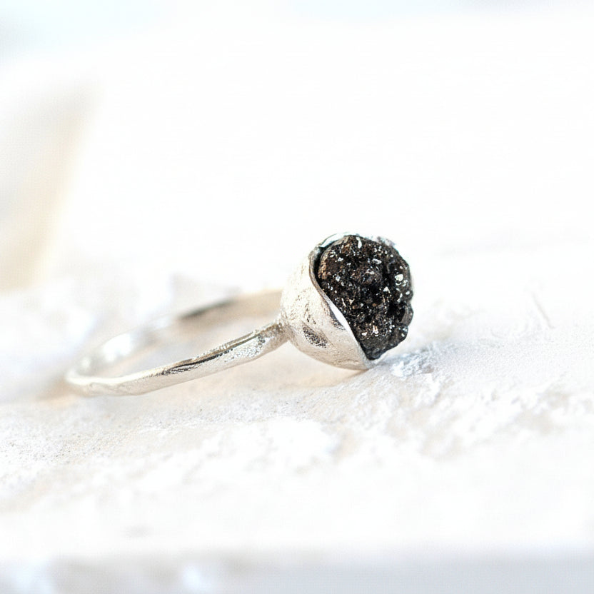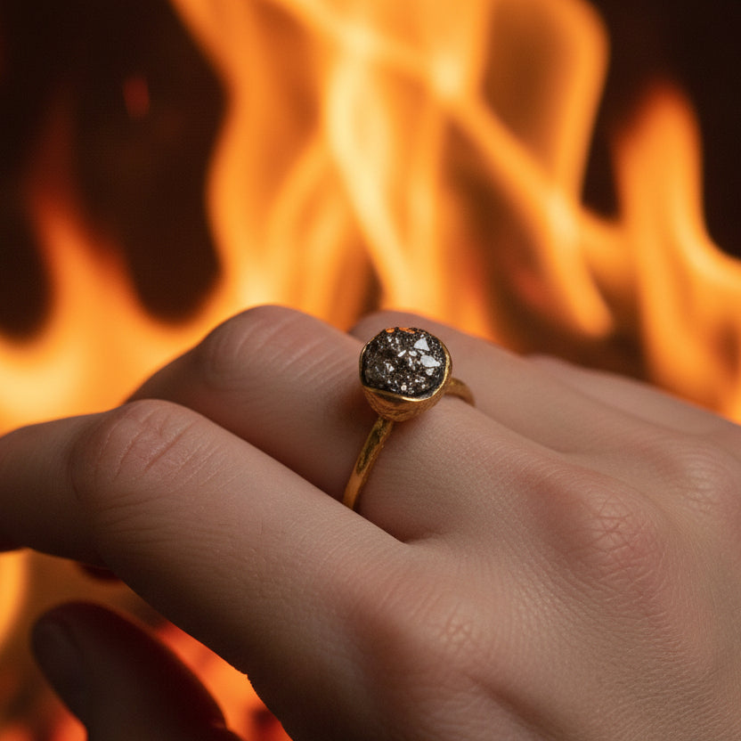 Pierścionek o organicznej strukturze to doskonały wybór dla osób ceniących unikalność i piękno natury. Piryt, znany również jako "złoto głupców" lub kamień ognia, zachwyca swoim metalicznym blaskiem i złotymi refleksami. Wybór pierścionka z tym kamieniem to nie tylko wyraz elegancji, ale także symboliczne nawiązanie do siły, pewności siebie i wewnętrznej mocy.