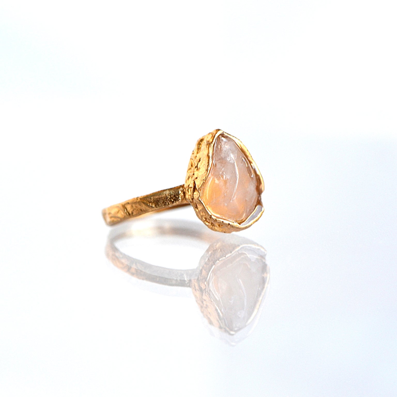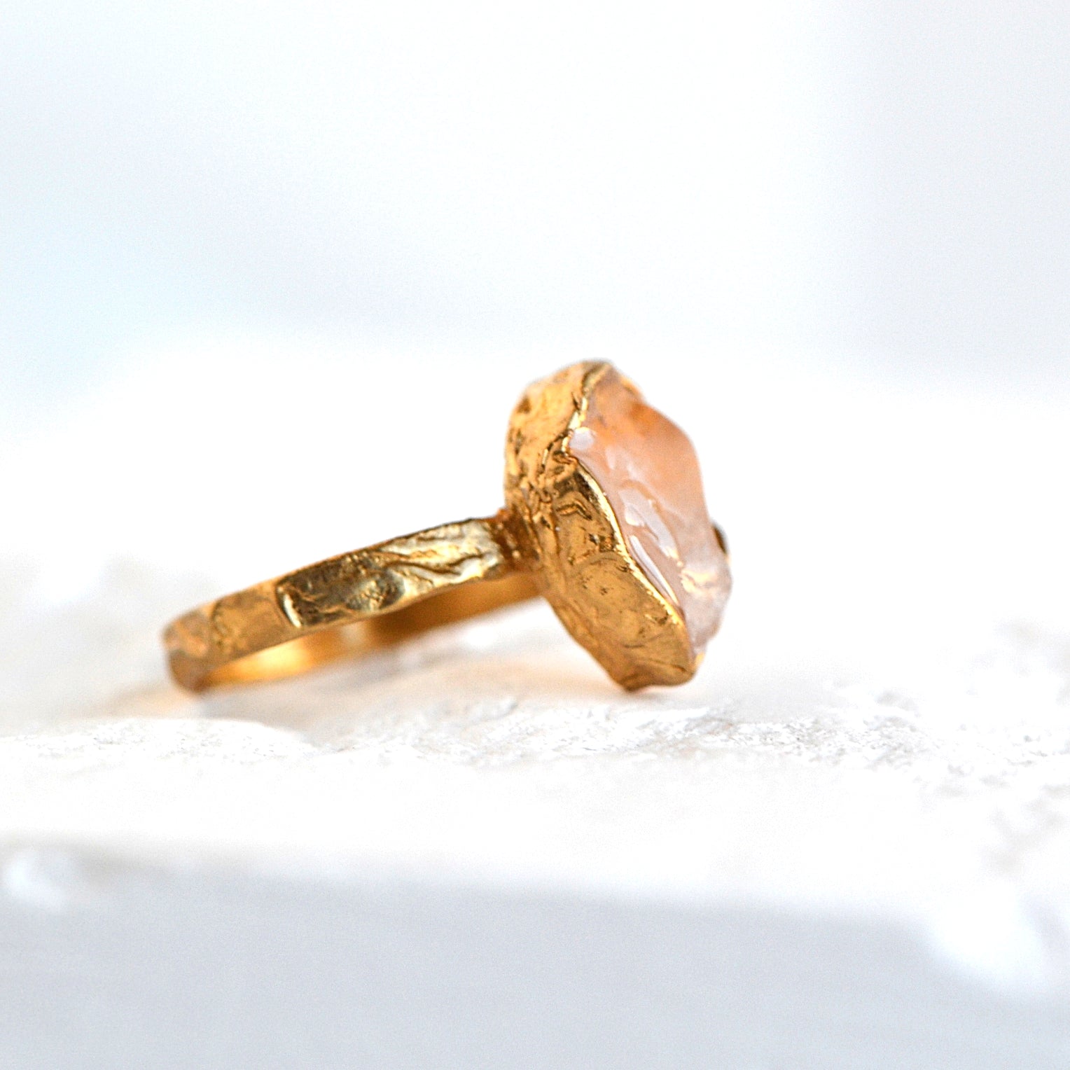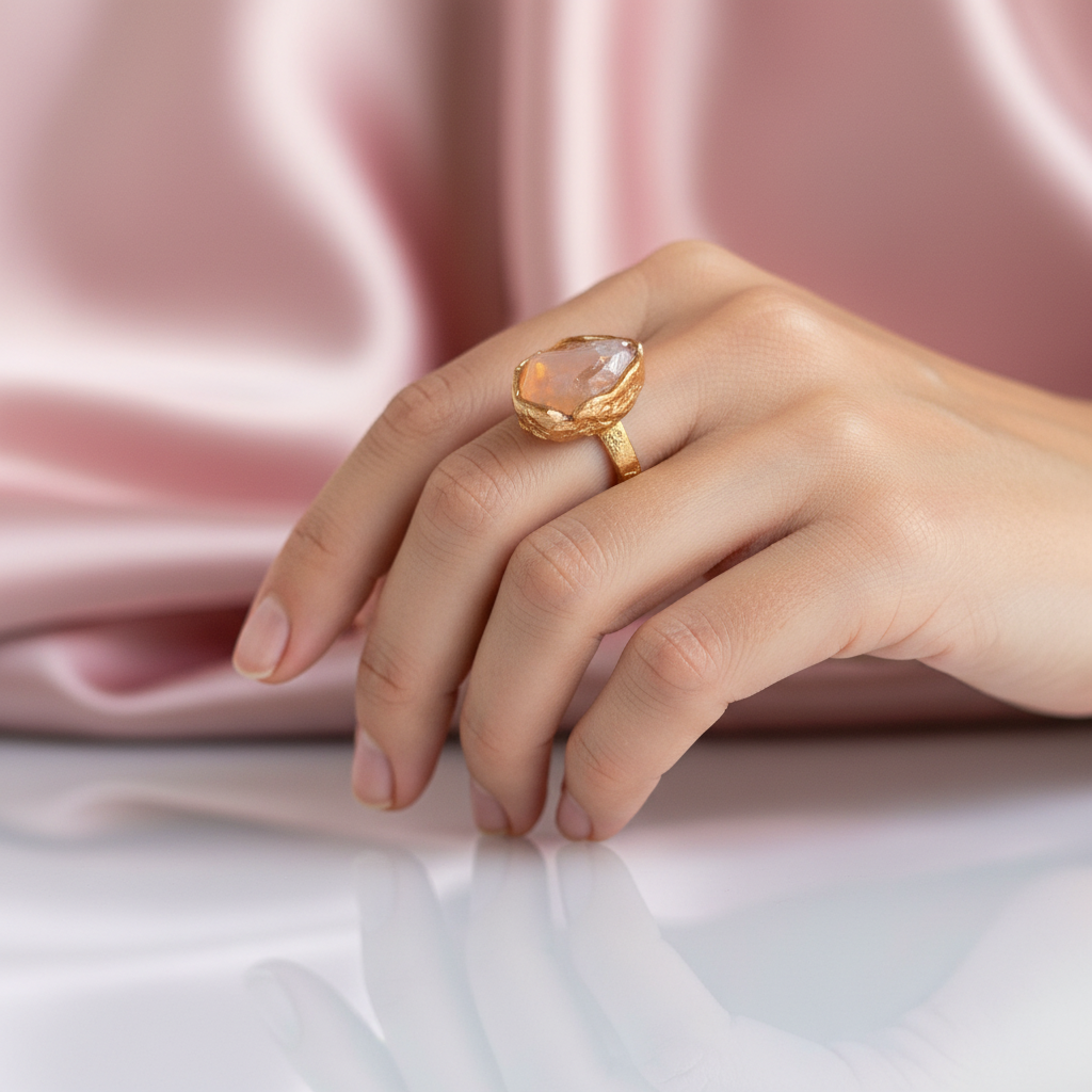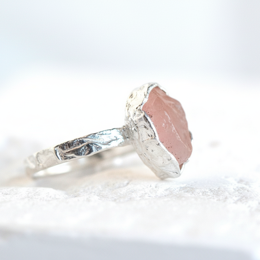 Pierścionek z Różowym Kwarcem o organicznej strukturze