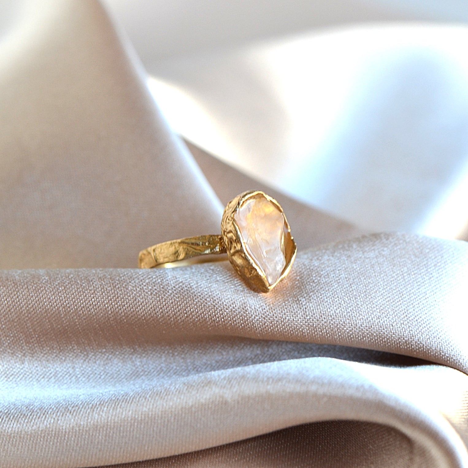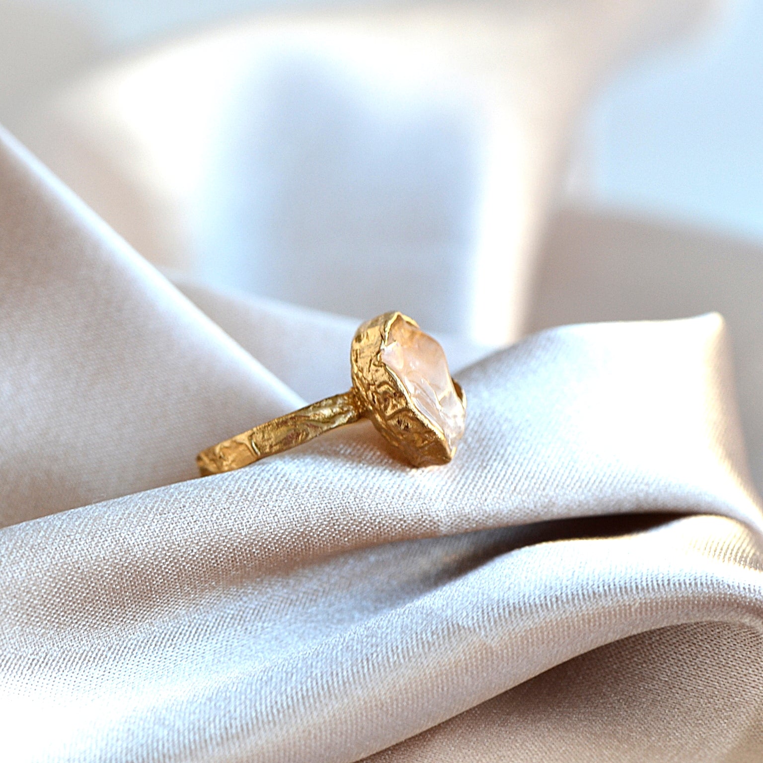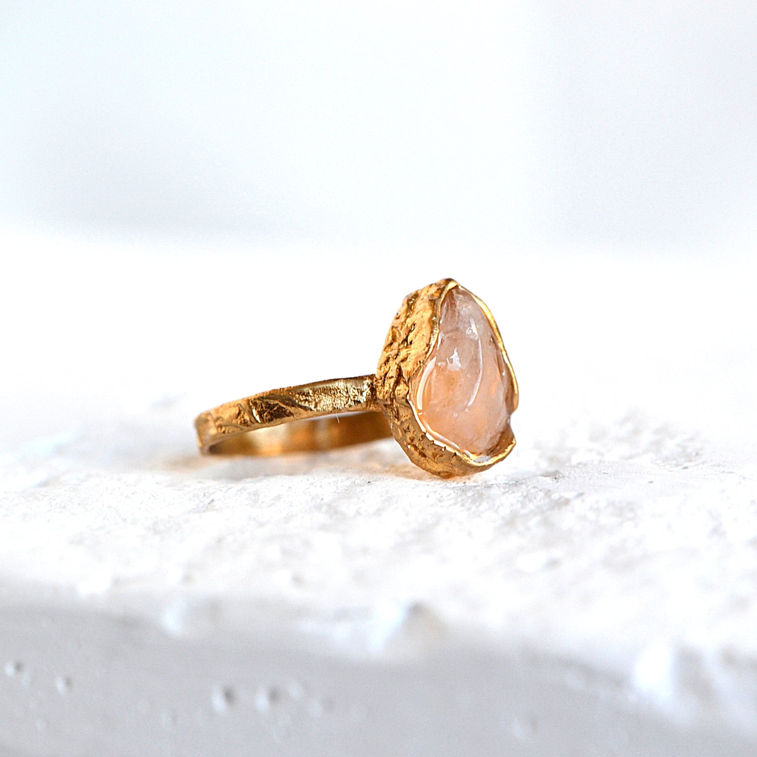 Pierścionek z Różowym Kwarcem o organicznej strukturze