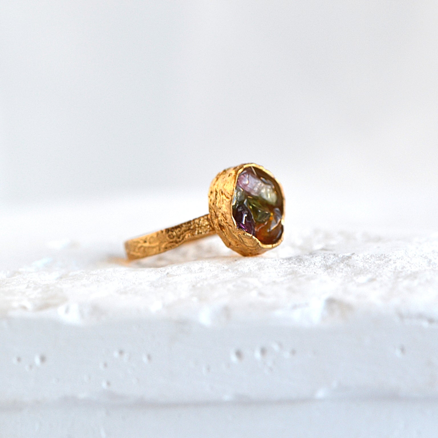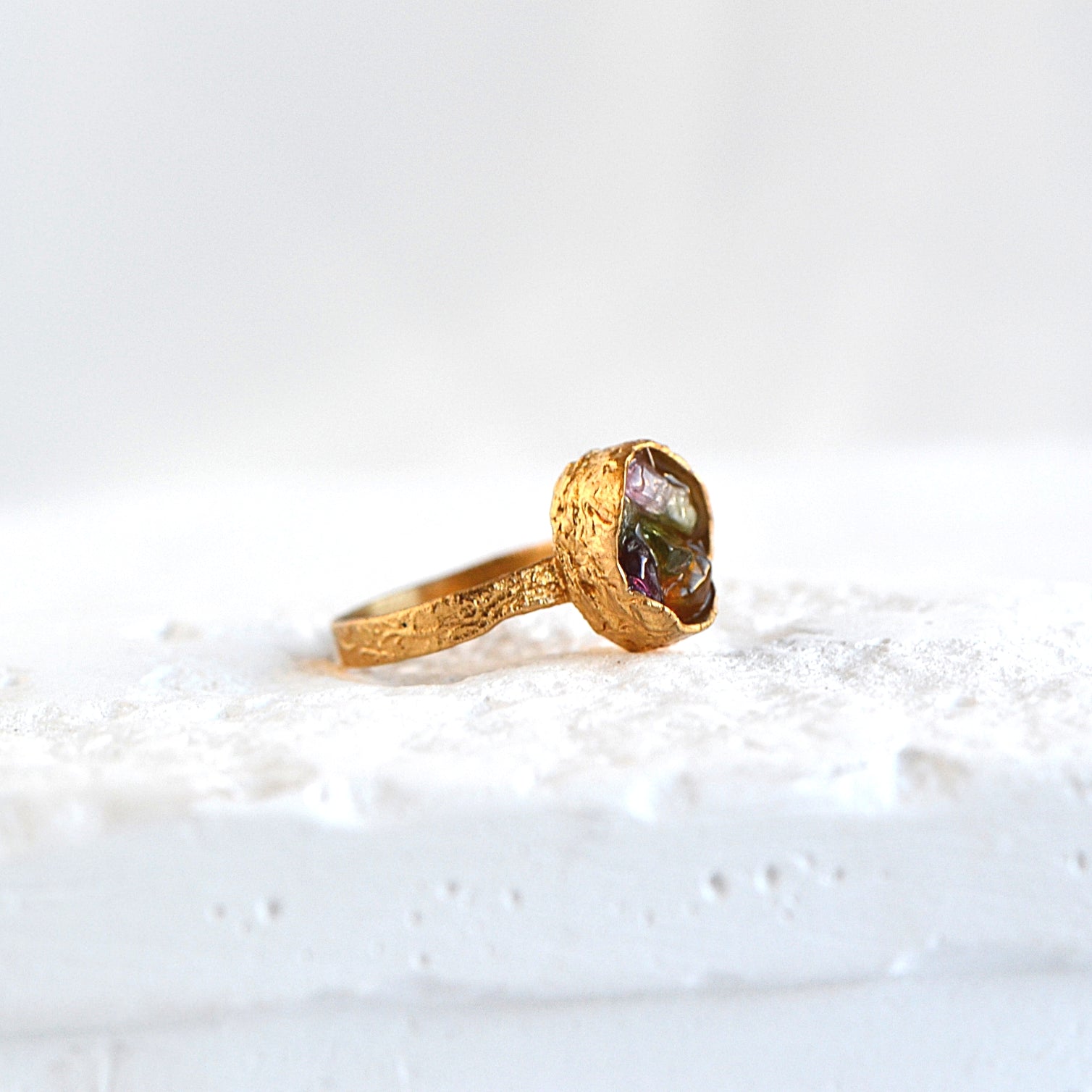 Pierścionek z Turmalinem o organicznej strukturze