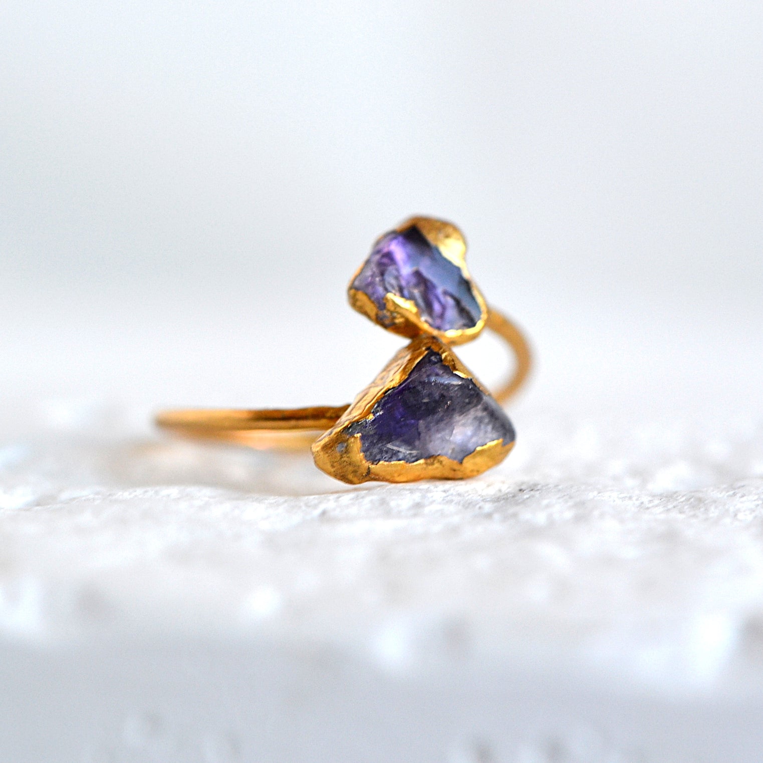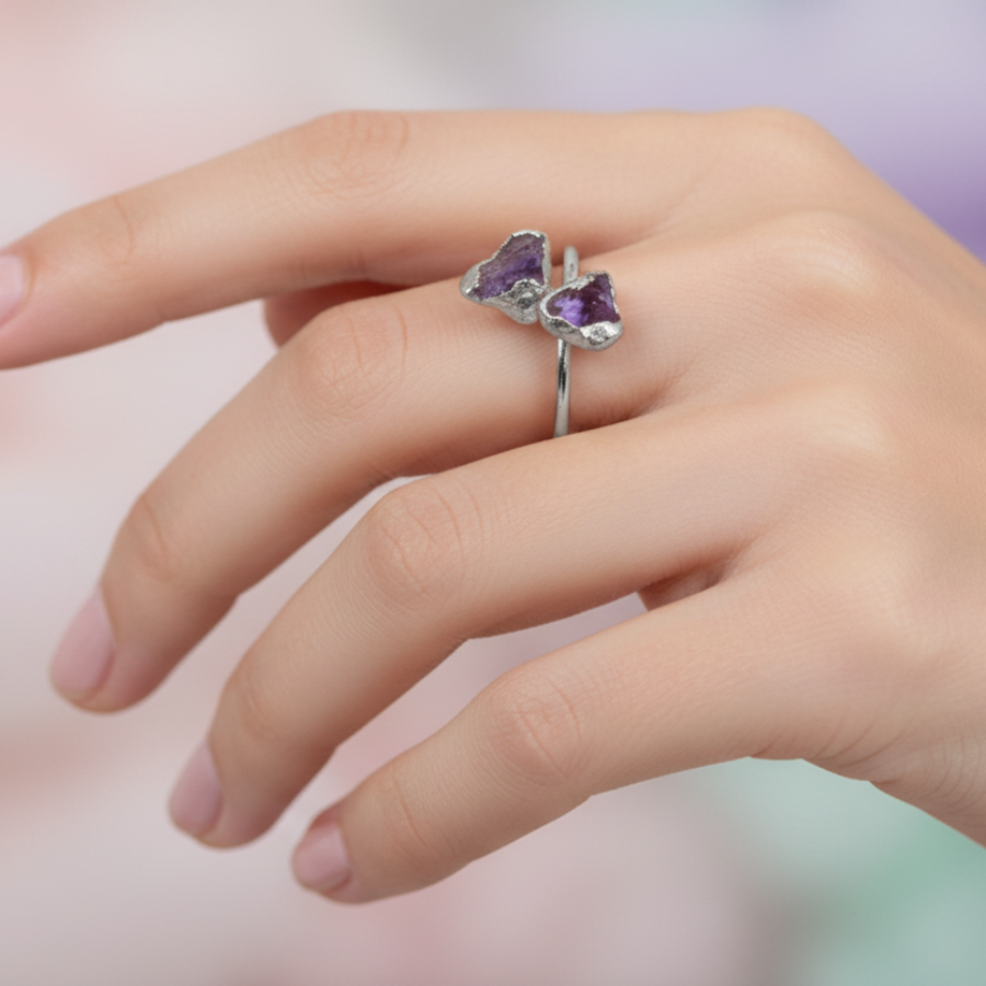 Regulowany Pierścionek z Ametystem o Organicznej Strukturze.