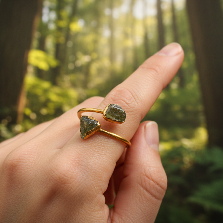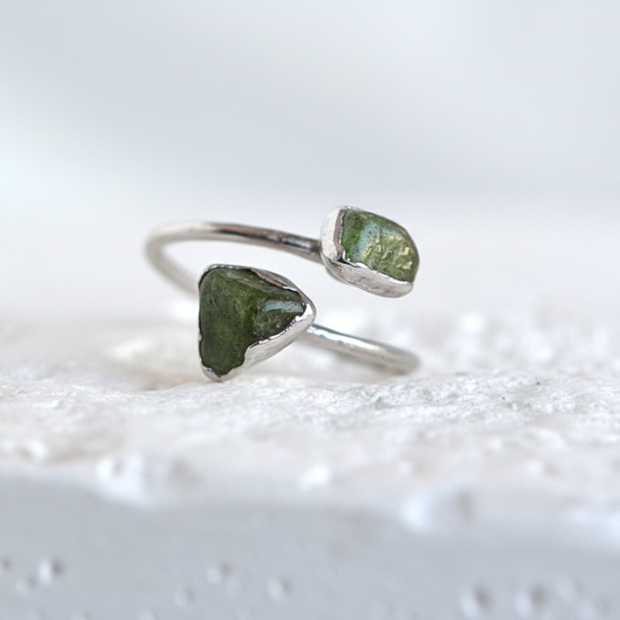 Regulowany Pierścionek z Epidotem o Organicznej Strukturze.